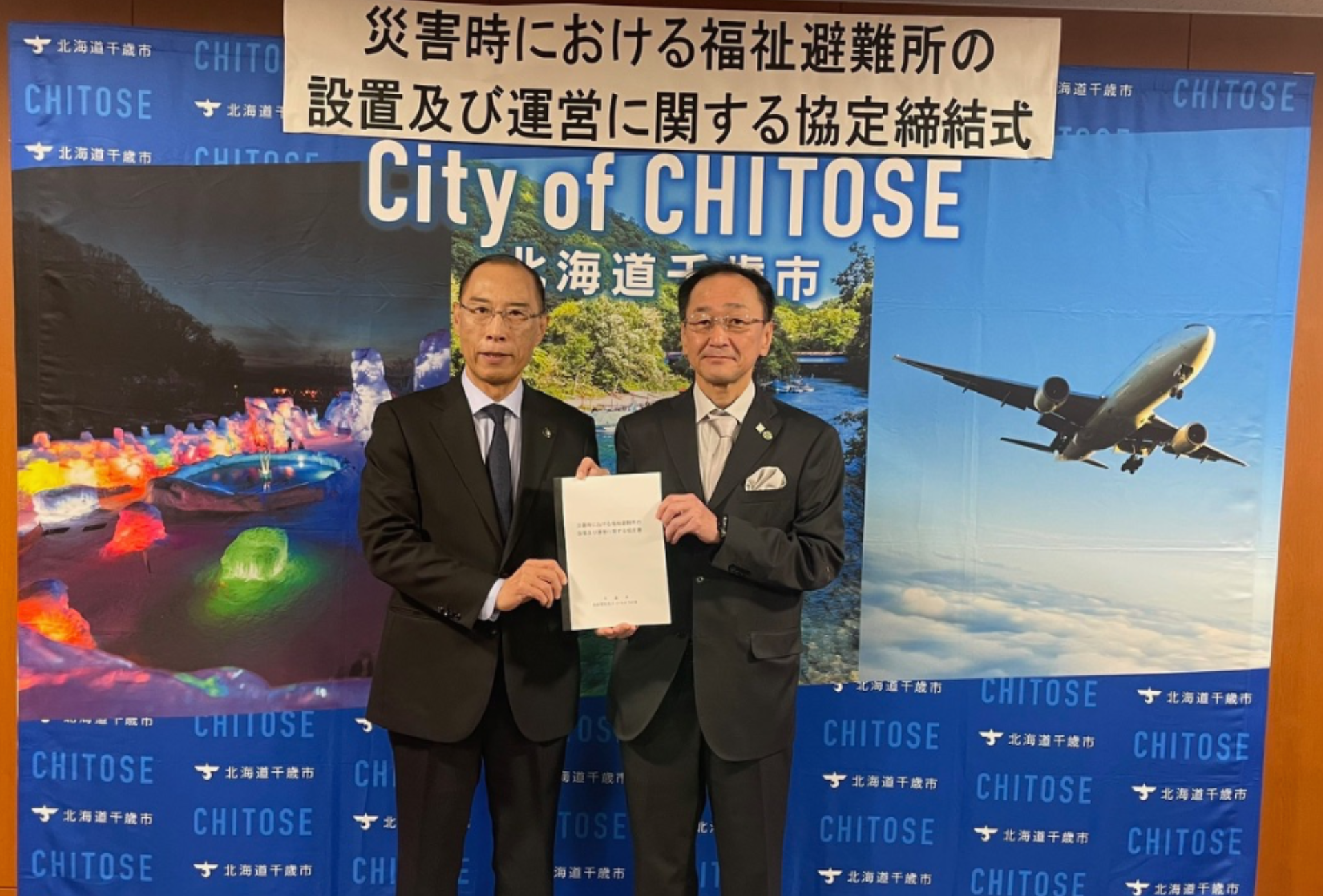 | 2024.11.28 | 千歳市災害時福祉避難所協定締結式へ出席しました 協定締結式には西部理事長が参加し災害時における千歳市内の福祉避難所として千歳市長と締結後に写真を撮影させていただきましたのでホームページ上部のスライドに掲載いたします。 大きな災害が発生せずいつもの「安心・安全」な日常生活が続く事が望ましいですが、災害はいつやってくるかわからないものですので事前に受け入れる法人や施設がわかれば千歳市民の安心にも繋がるのではないかと思っております。 |